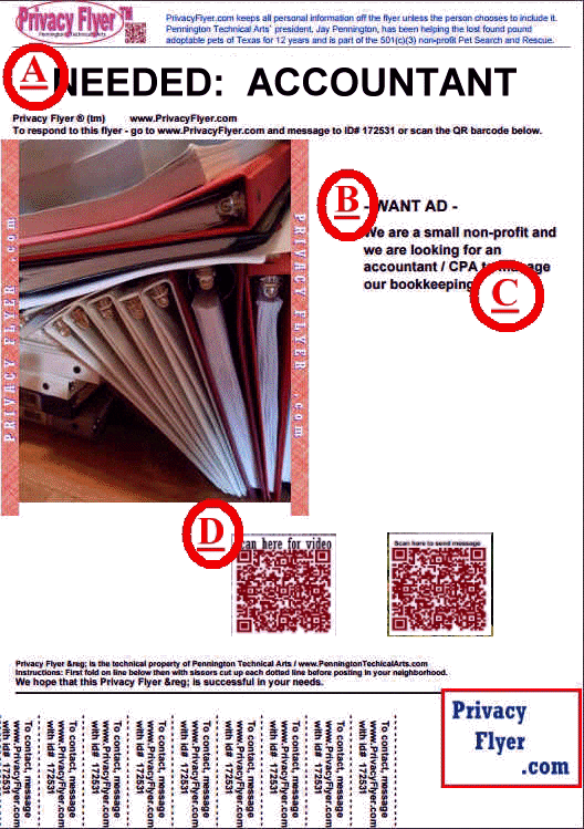 Privacy Flyers have two easy ways for someone seeing your flyer to quickly get a message to you.